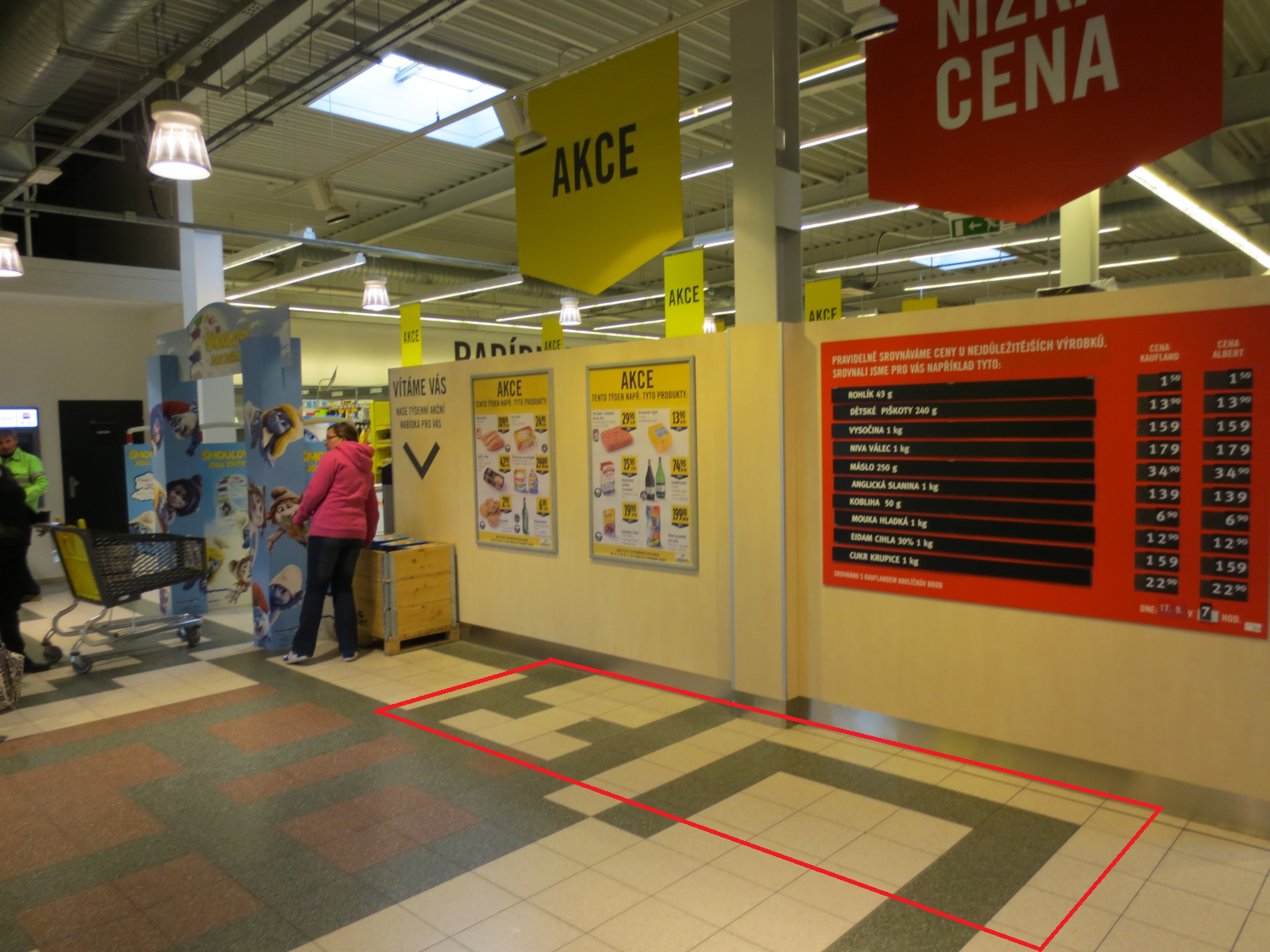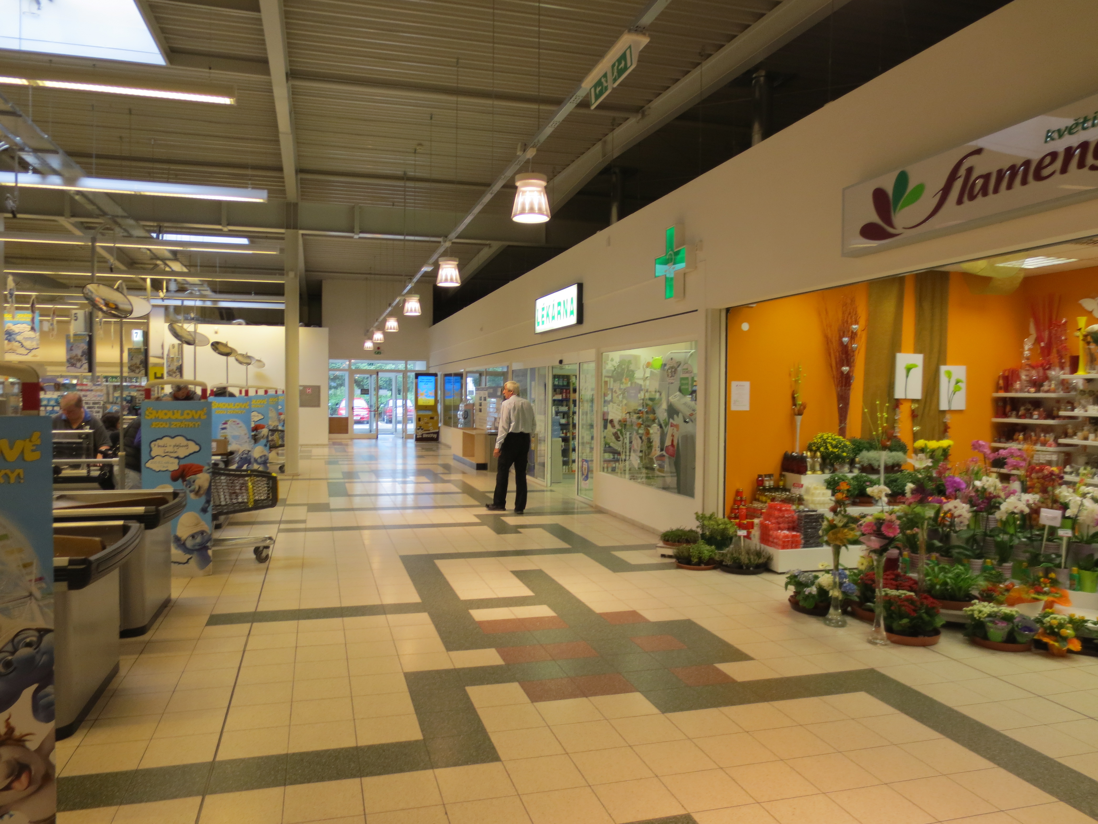Plocha při vstupu do prodejny Albert. Jedná se o úzkou plochu, do které nelze umístit stánek hlubší, než 1 metr.6 m²