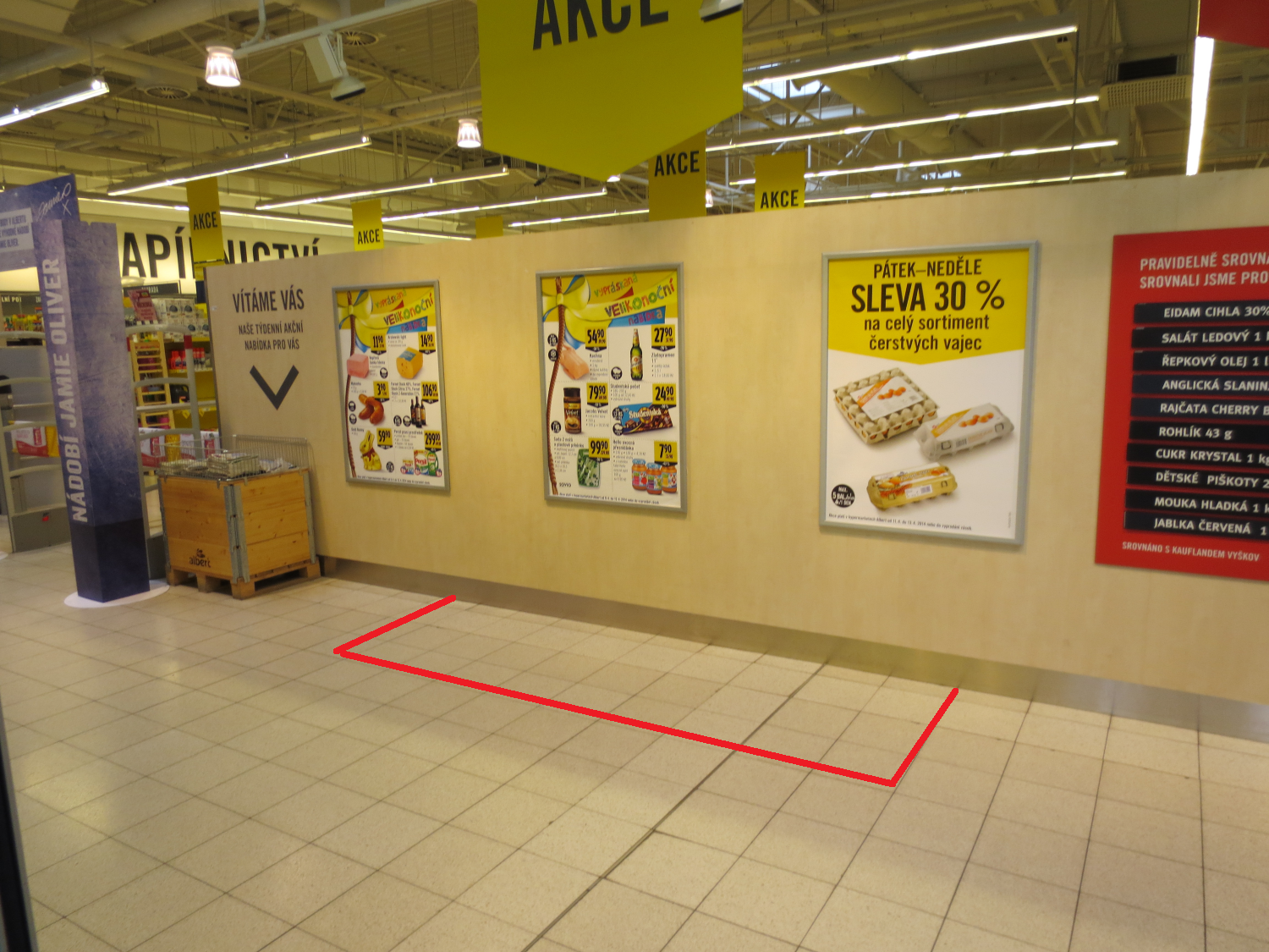 Prodejní plocha při vstupu do prodejny Albert. Vhodná pouze pro stánky do 1m hloubky.4 m²