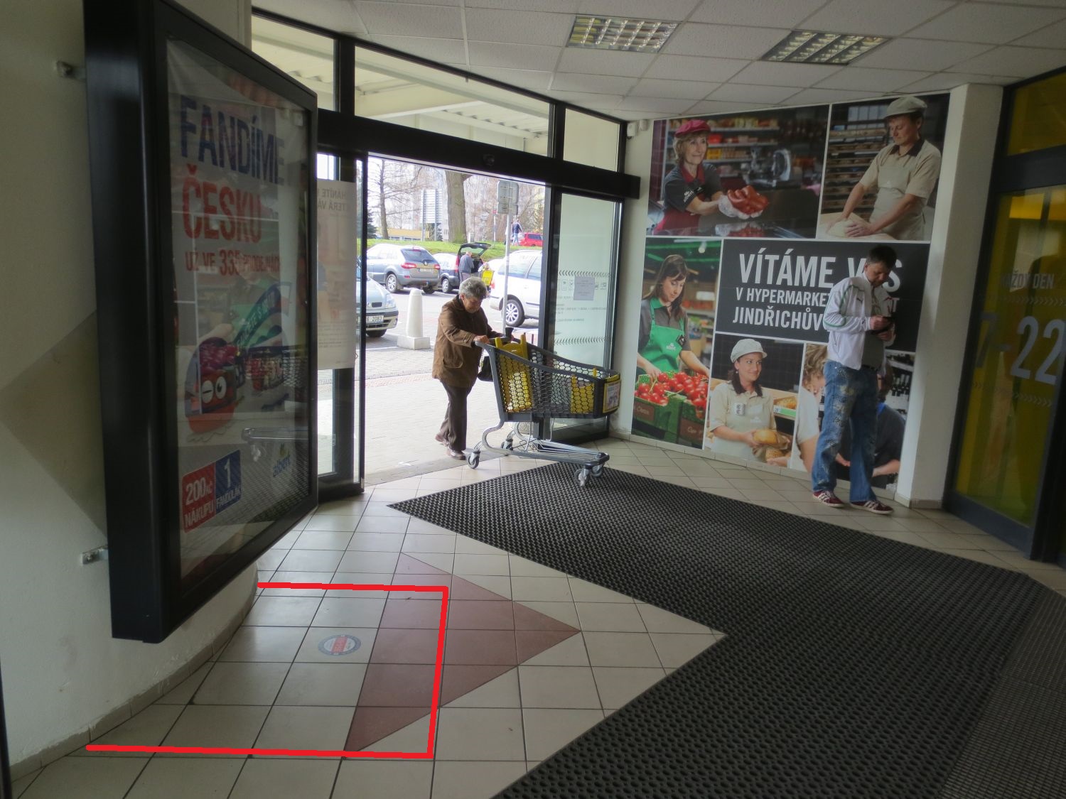 Vnější plocha při vstupu do hypermarketu.