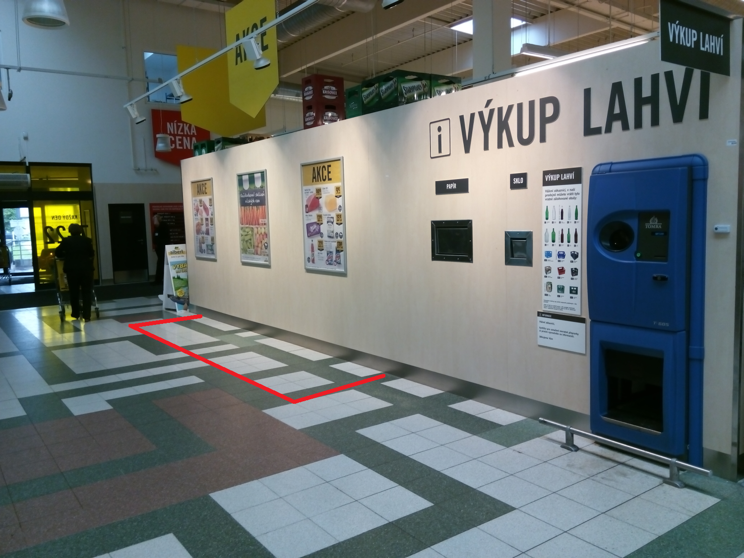 Obchodní plocha při vstupu do prodejny Albert. Je určena pro stánky s maximální hloubkou 1m.4 m²