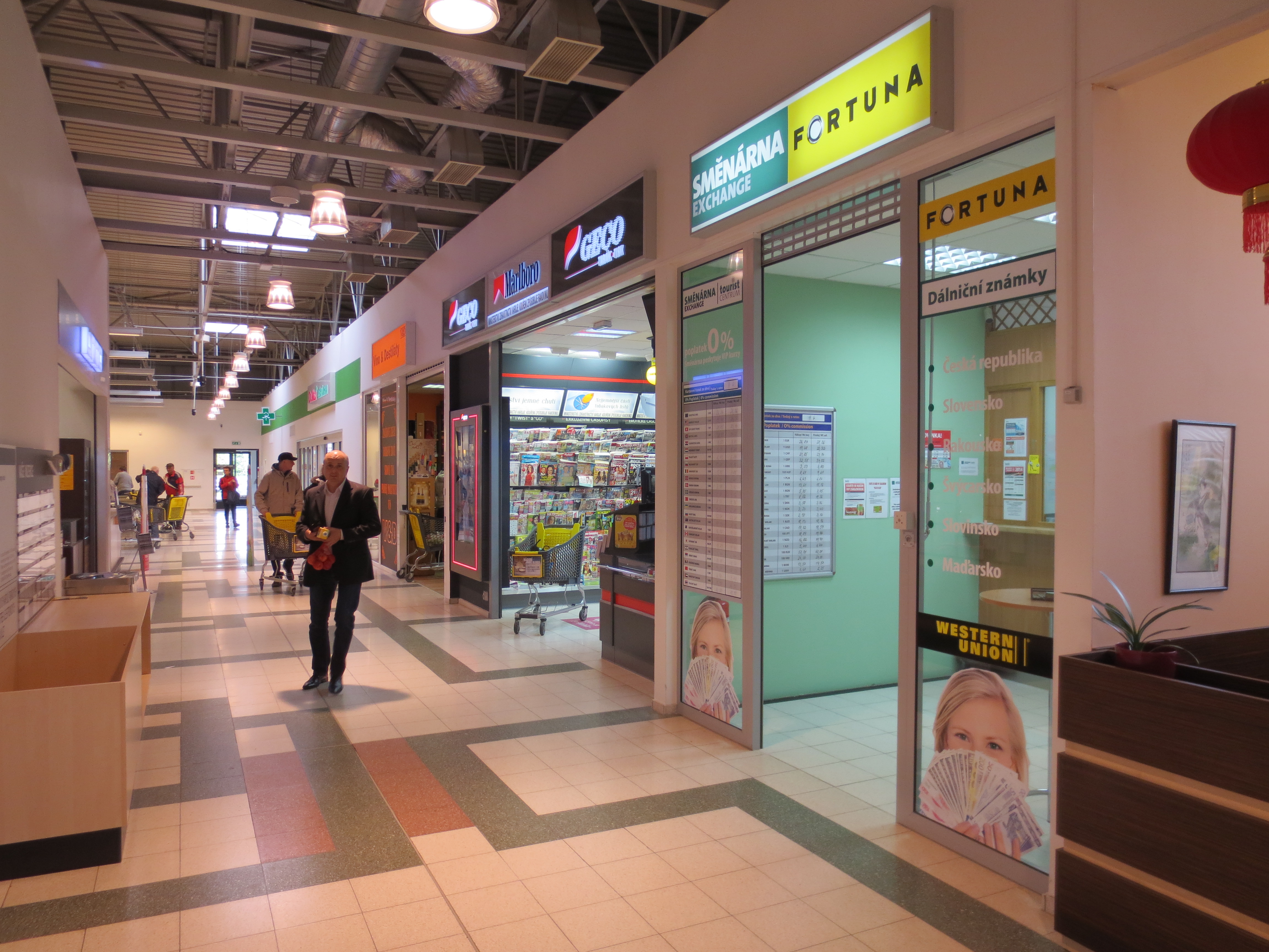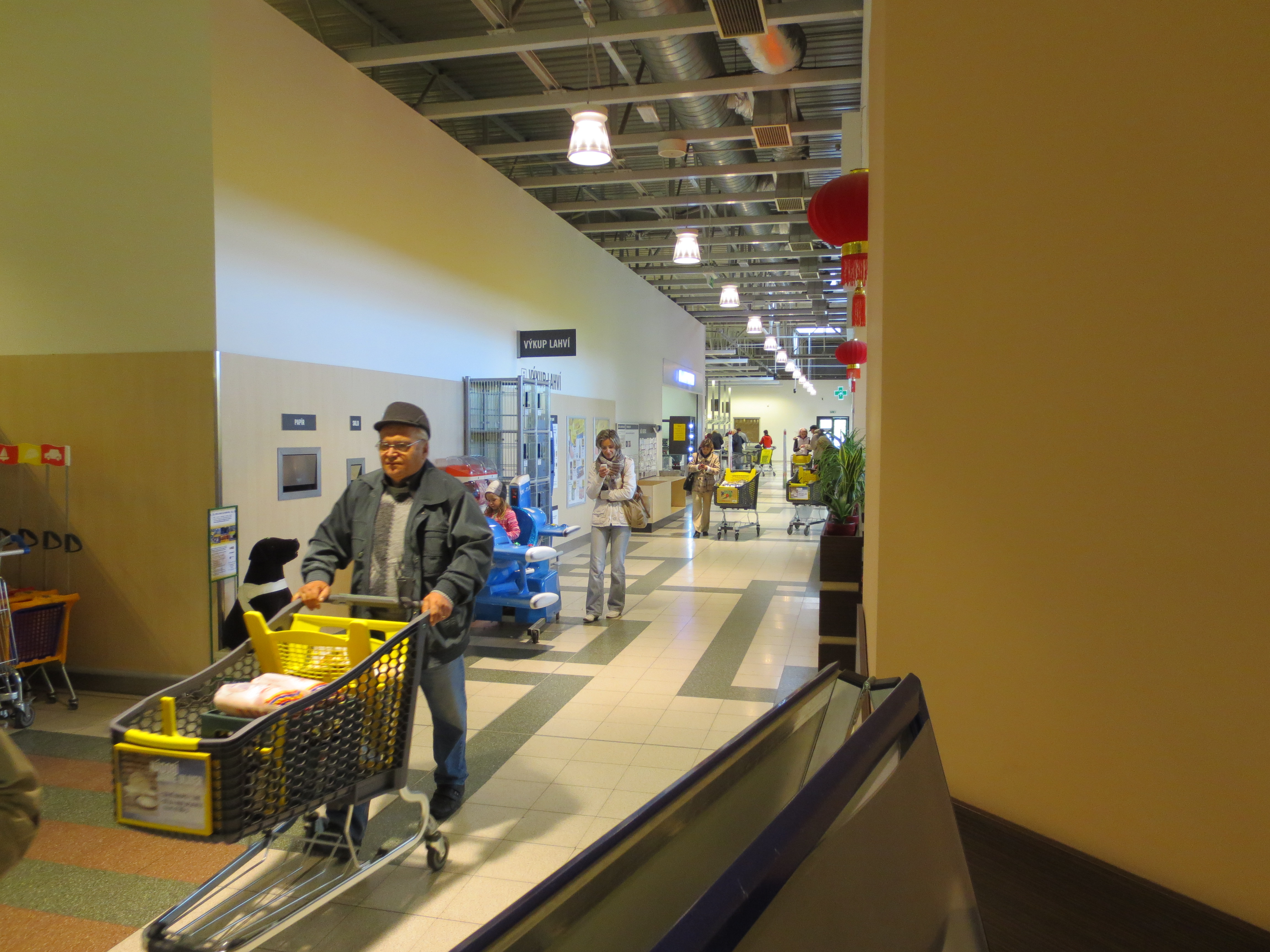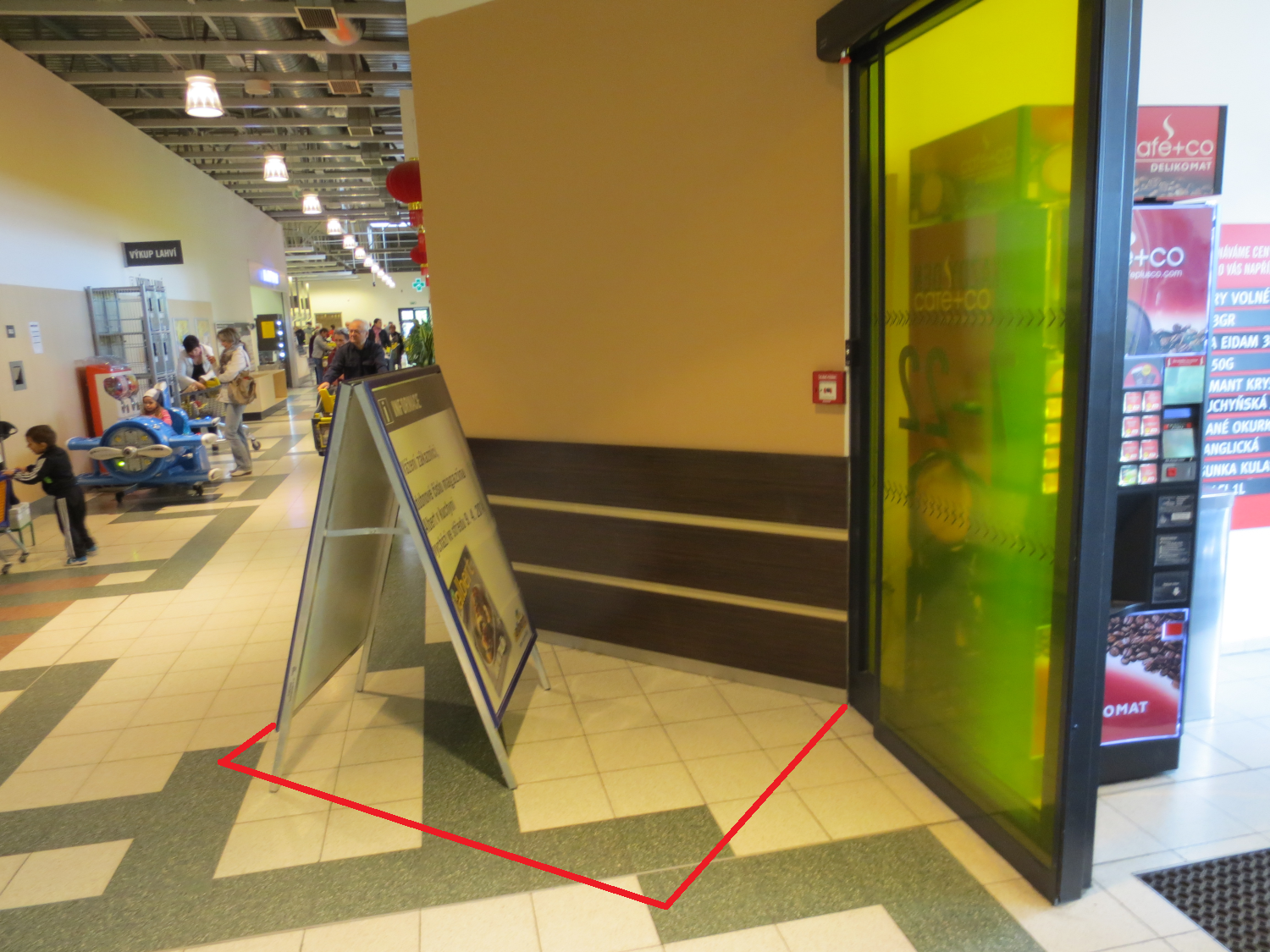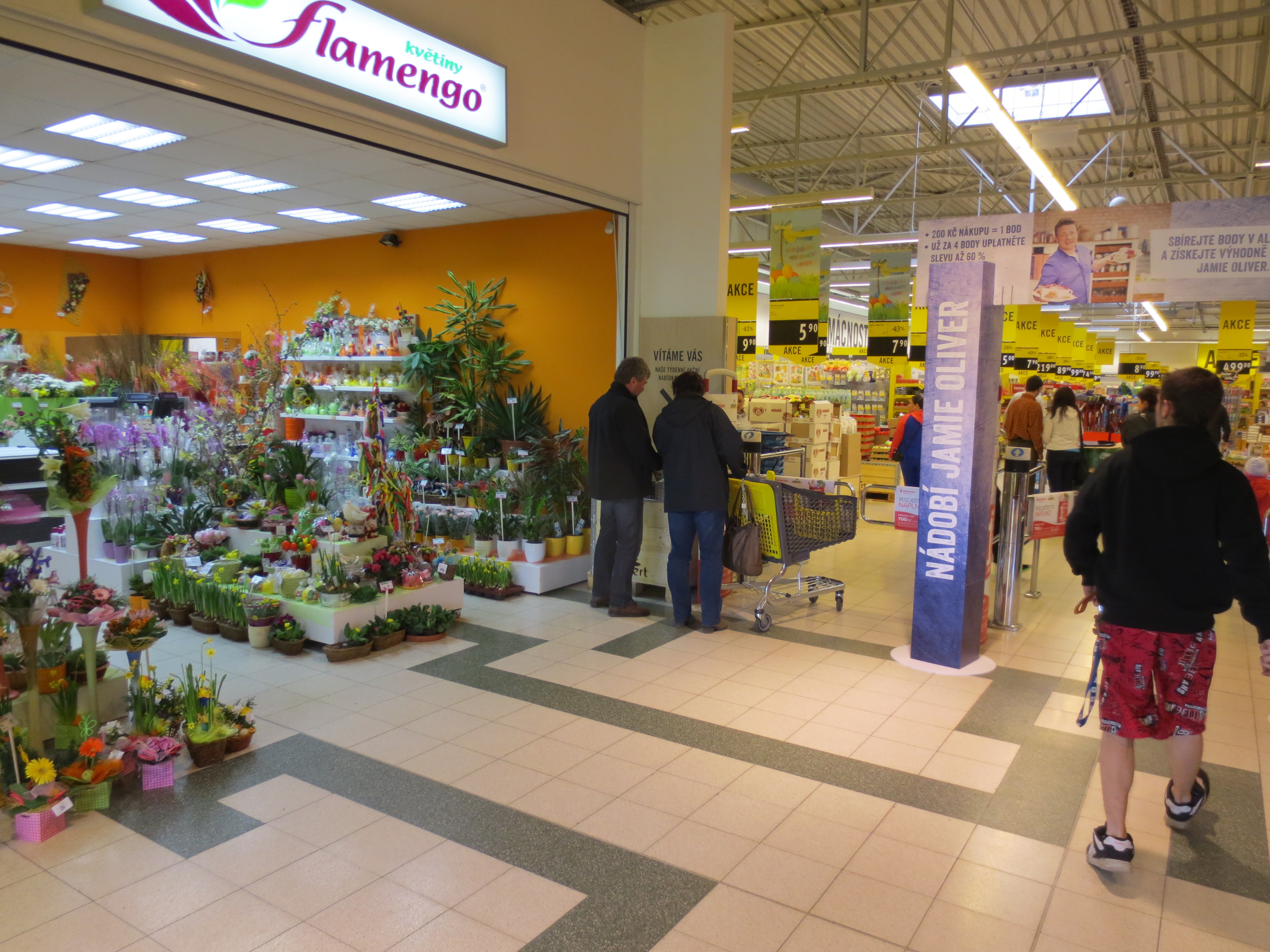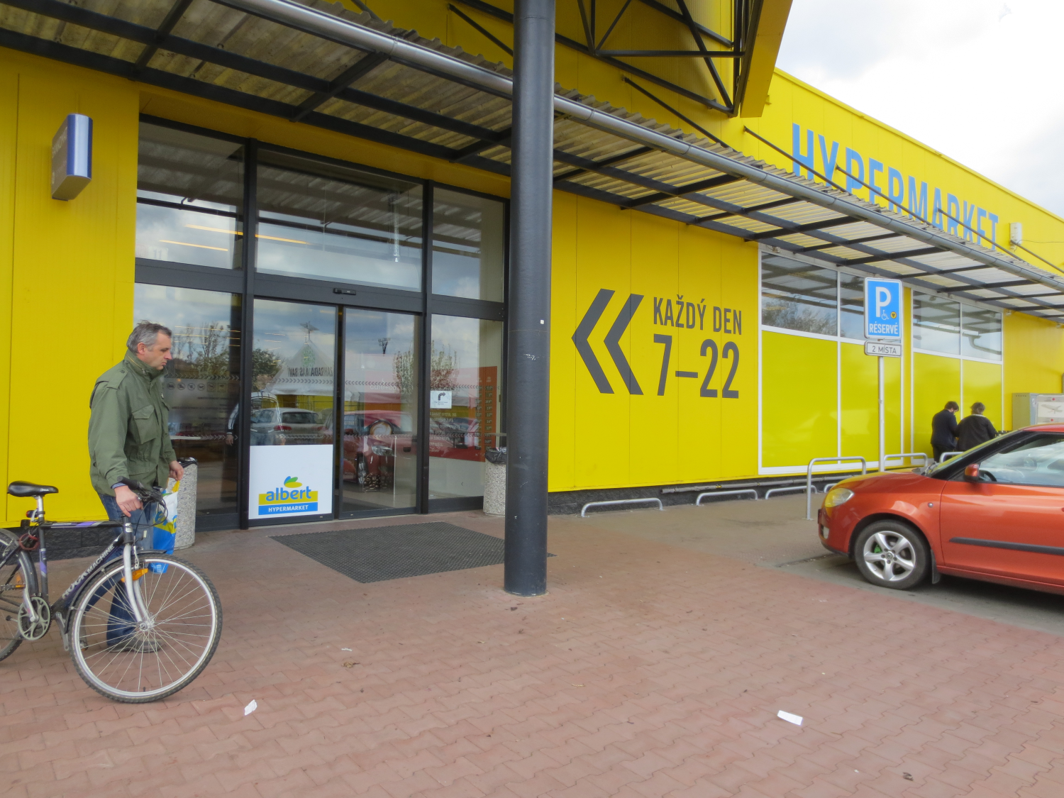 Venkovní plocha před vstupem do hypermarketu.
